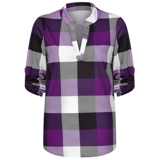 Karierte Frühlingsbluse mit V-Ausschnitt in Übergröße