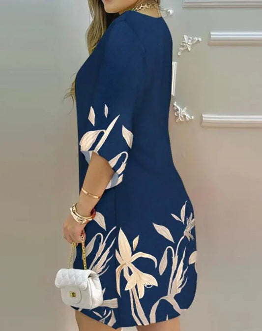 Im AngebotPflanzendruck lässiges Kleid in Übergröße