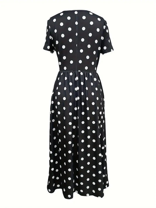 Eleanor – luftiges, kurzärmliges, gepunktetes keid mit rundhalsausschnitt