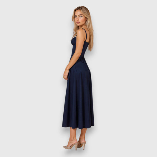 Ärmelloses Damen-Midikleid mit dünnen Trägern für den Sommer