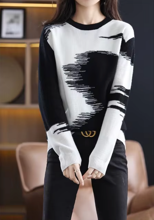 Clara - Eleganter dreifarbiger Patchwork-Pullover