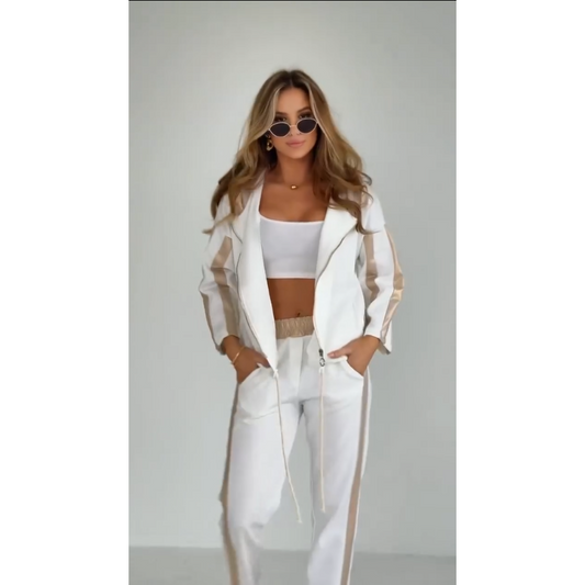 Gestreifter Freizeit-Zweiteiler mit Kapuze & Taillenband – Cosima