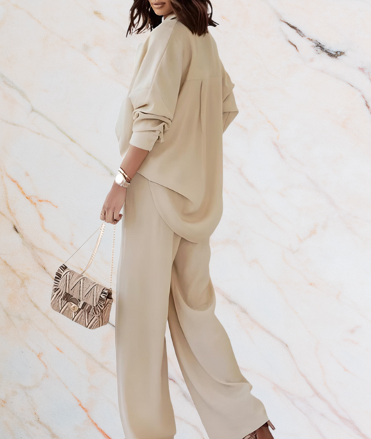 Ocie - Beigefarbenes 2-teiliges Set mit lockerem Oberteil und Hose