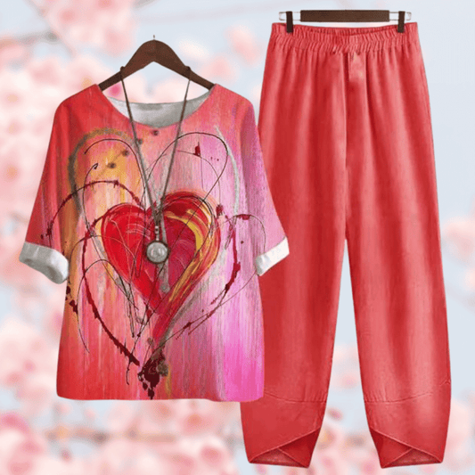 Warmer zweiteiliger Damen-Set mit Herzprint - Bella