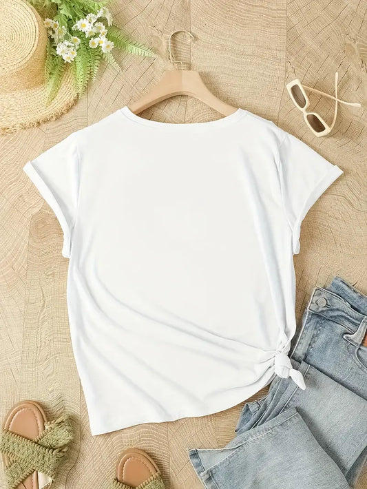 Sommer T Shirt Mit Rundhalsausschnitt Für Damen | Weiß