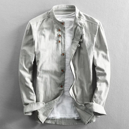 Luftiges Herrenhemd aus Leinen Mit Kubakragen und Langarm – Mateo