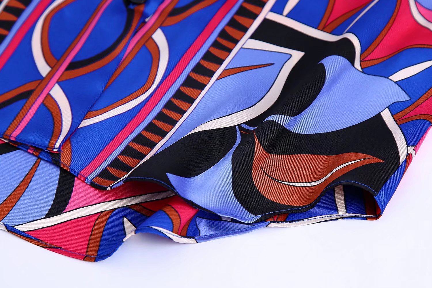 Das Set ist aus hochwertigem Material gefertigt und hat einen richtig coolen Bermuda-Druck. Es ist auch super einfach, Sie müssen nur das Set anziehen, ein Paar schöne Pumps oder Stiefel darunter und fertig. Sie können die Bluse oder den Rock auch separat tragen, noch mehr Abwechslung! Wir lieben es!