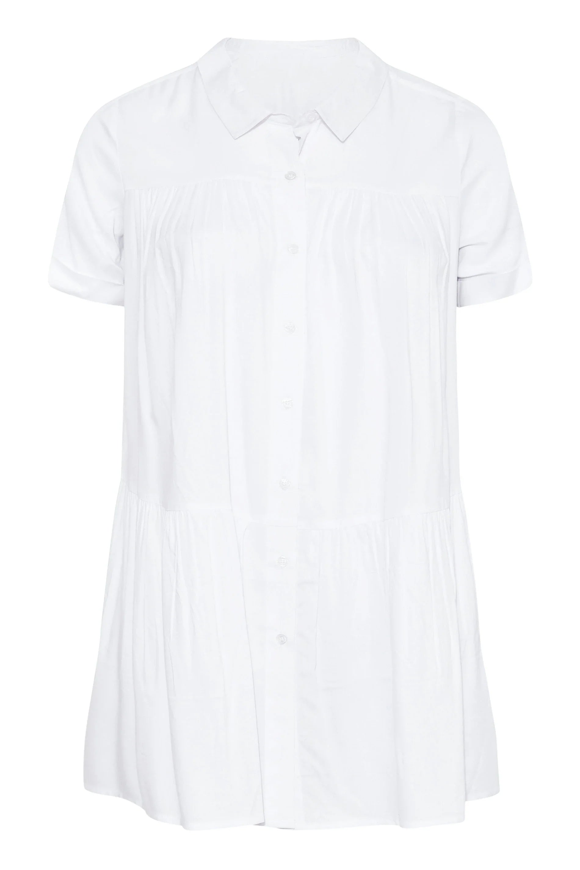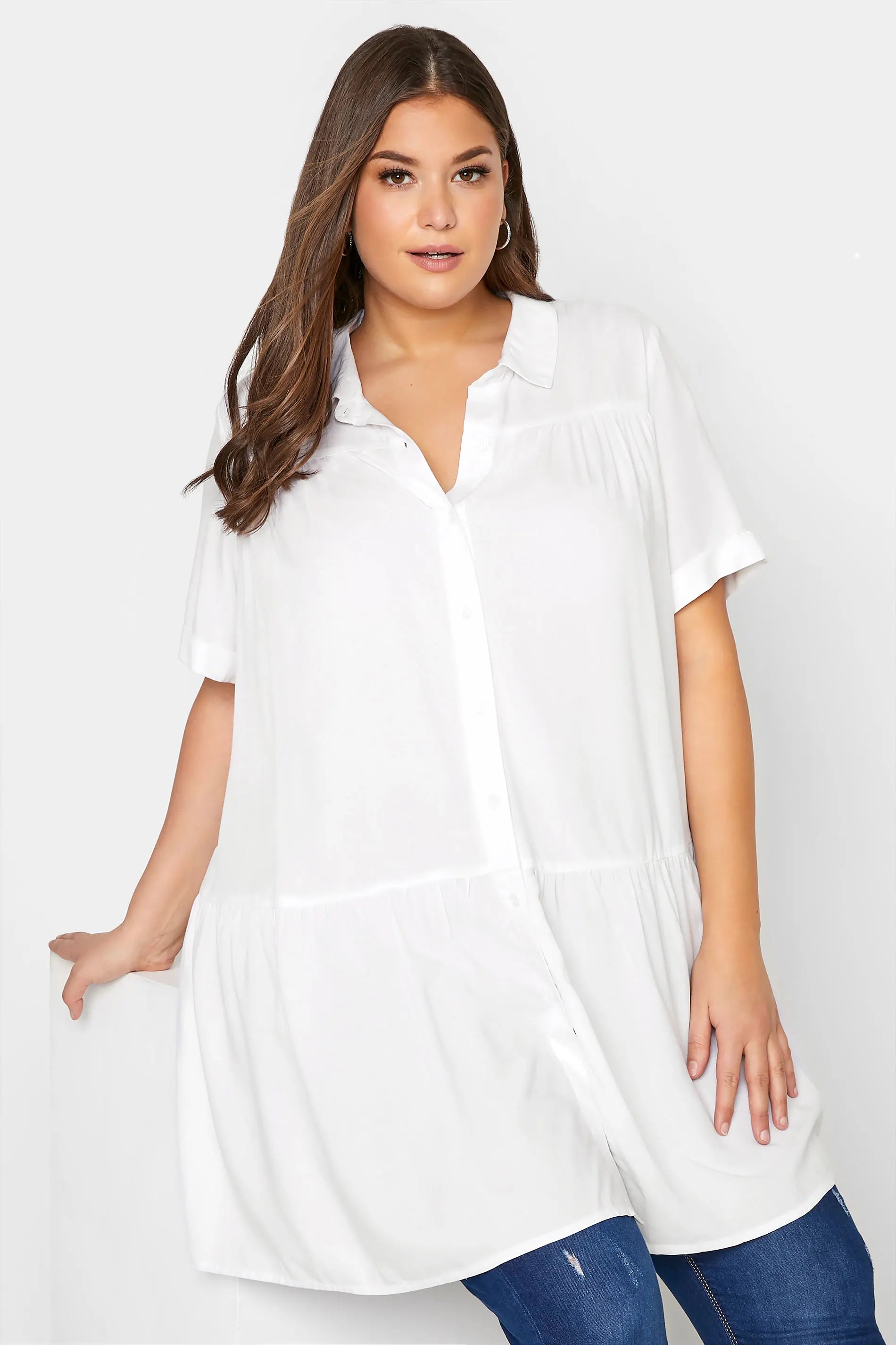 Erreichen Sie mit Elegantes, langes Spucke-Hemd in Übergröße eine perfekte Balance aus Eleganz und Komfort. Diese lässige Stufenbluse mit kurzen Ärmeln ist die ideale Wahl für einen schicken Sommerlook. Die lockere und fließende Passform sorgt für Komfort und Atmungsaktivität, während das lange Design einen Hauch von Raffinesse verleiht.