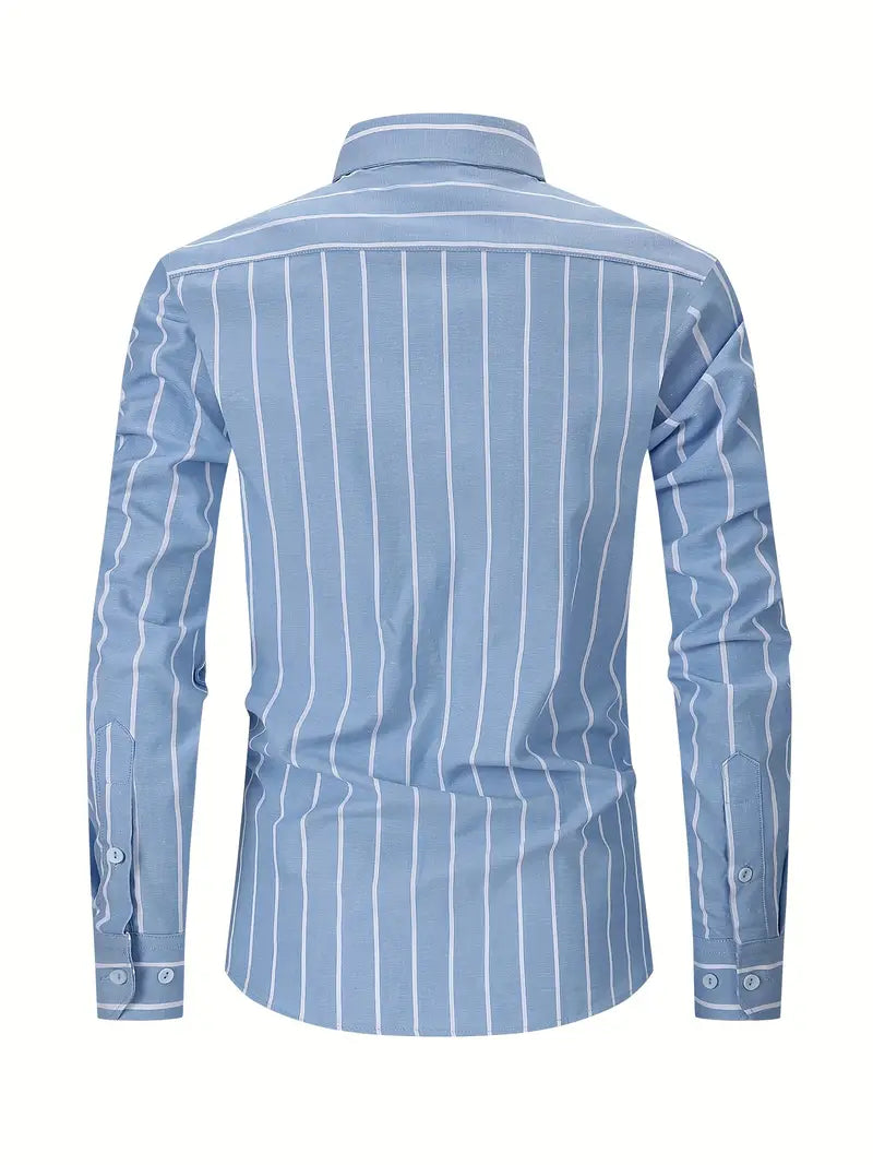 Wir präsentieren Emilio , das lässige Streifen-Langarmhemd für Herren, eine stilvolle Mischung aus lässigem Komfort und zeitlosem Charme.