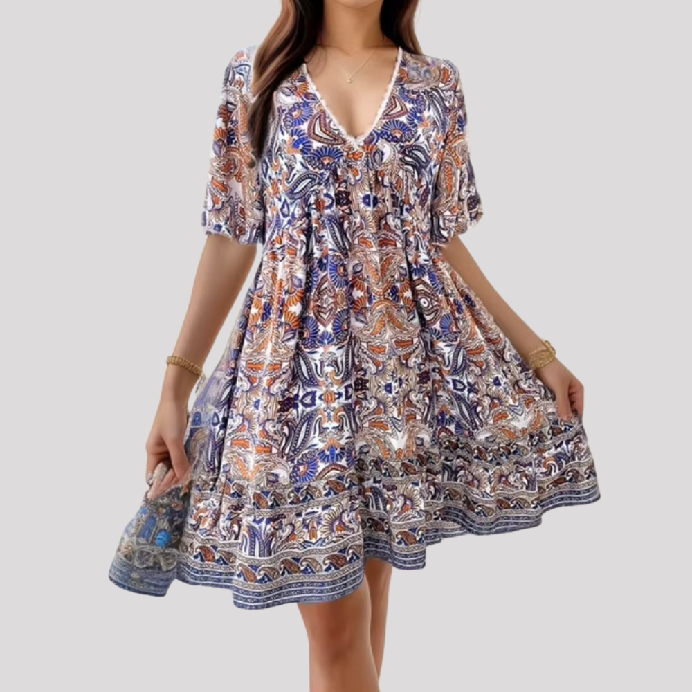 Klodette - Luftiges Boho-Kleid mit Ethno-Print
