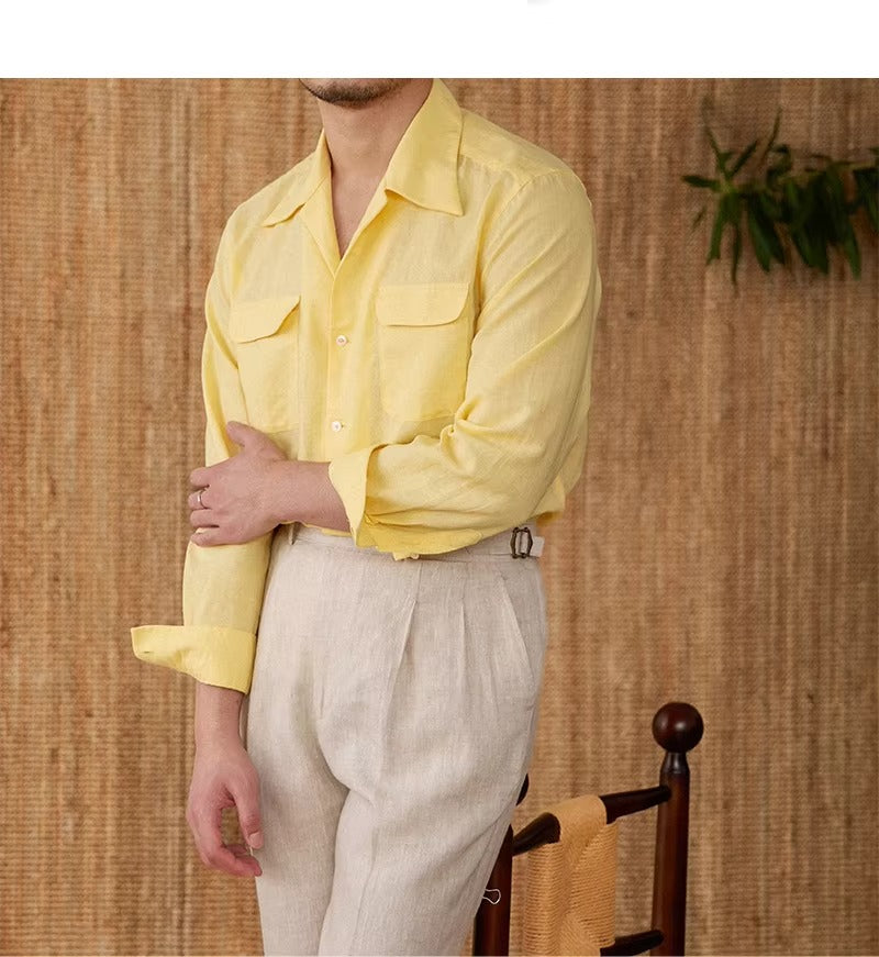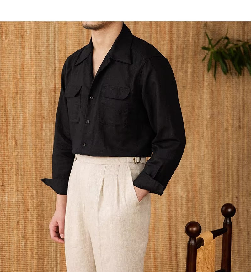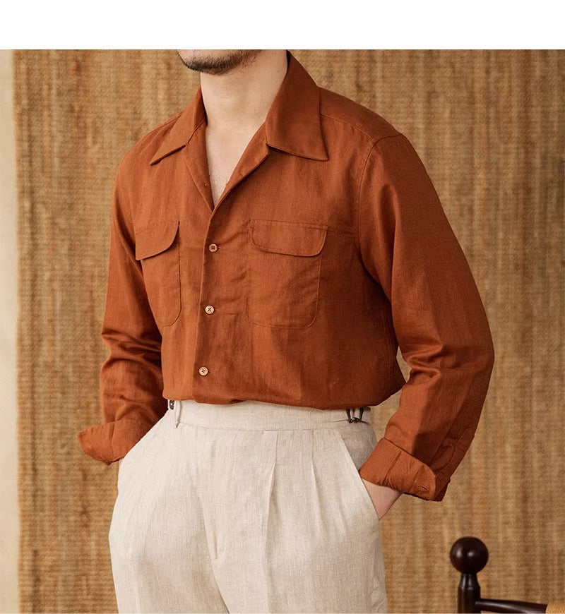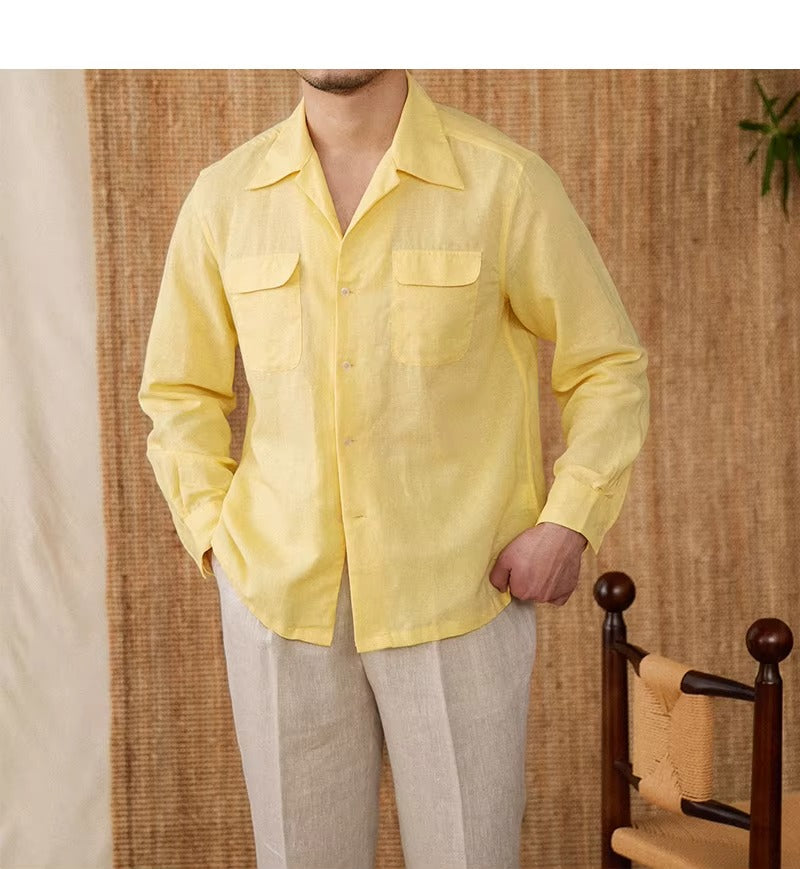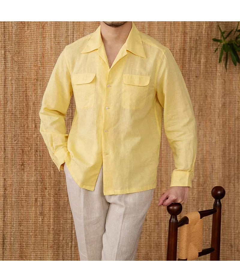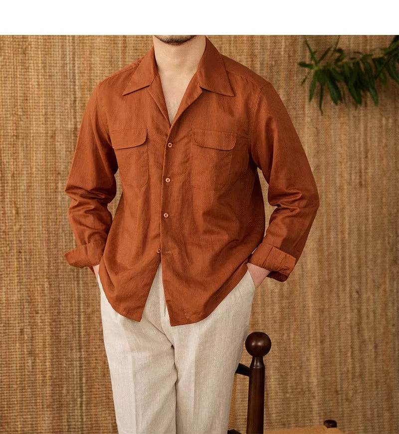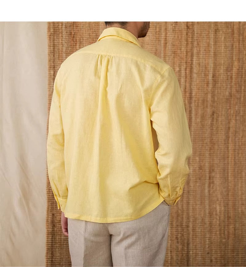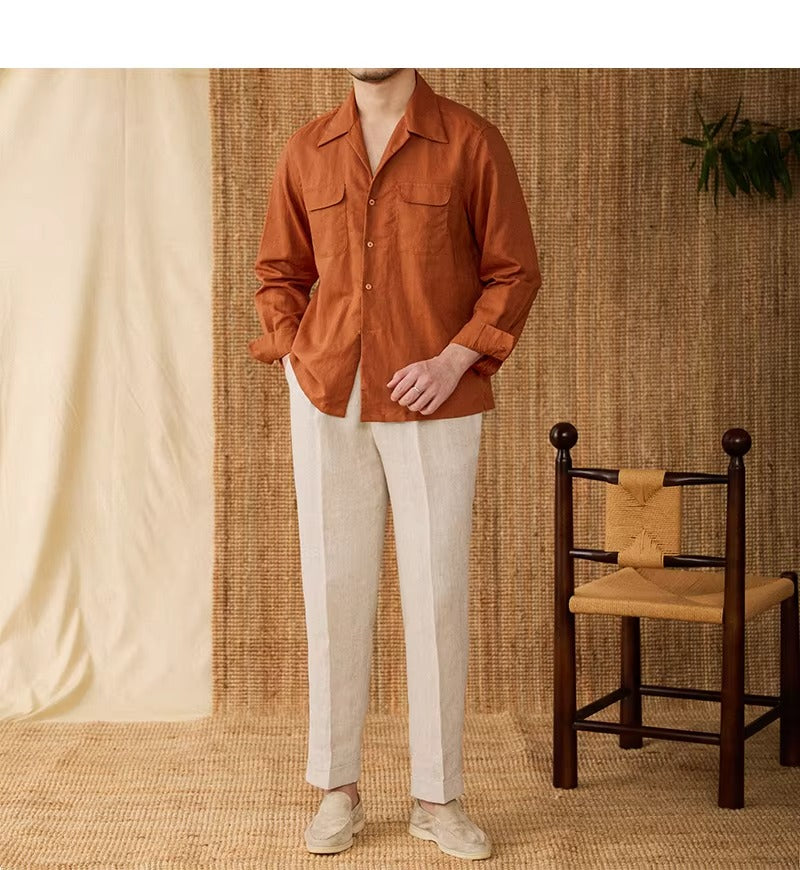 Luftiges Herrenhemd aus Leinen Mit Kubakragen und Langarm – Mateo