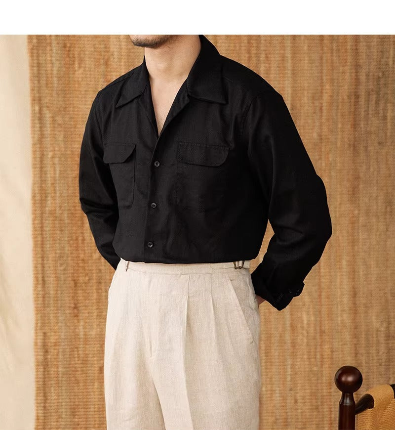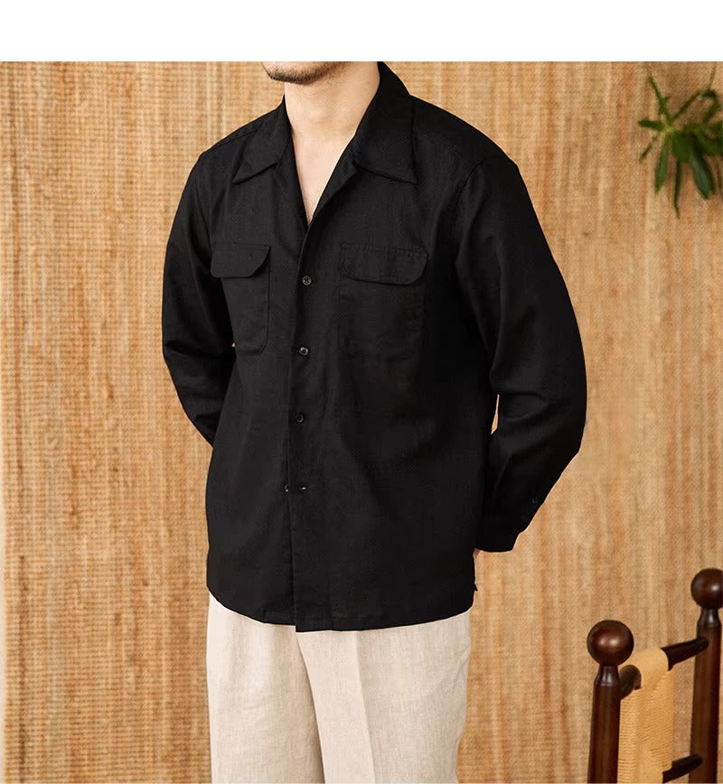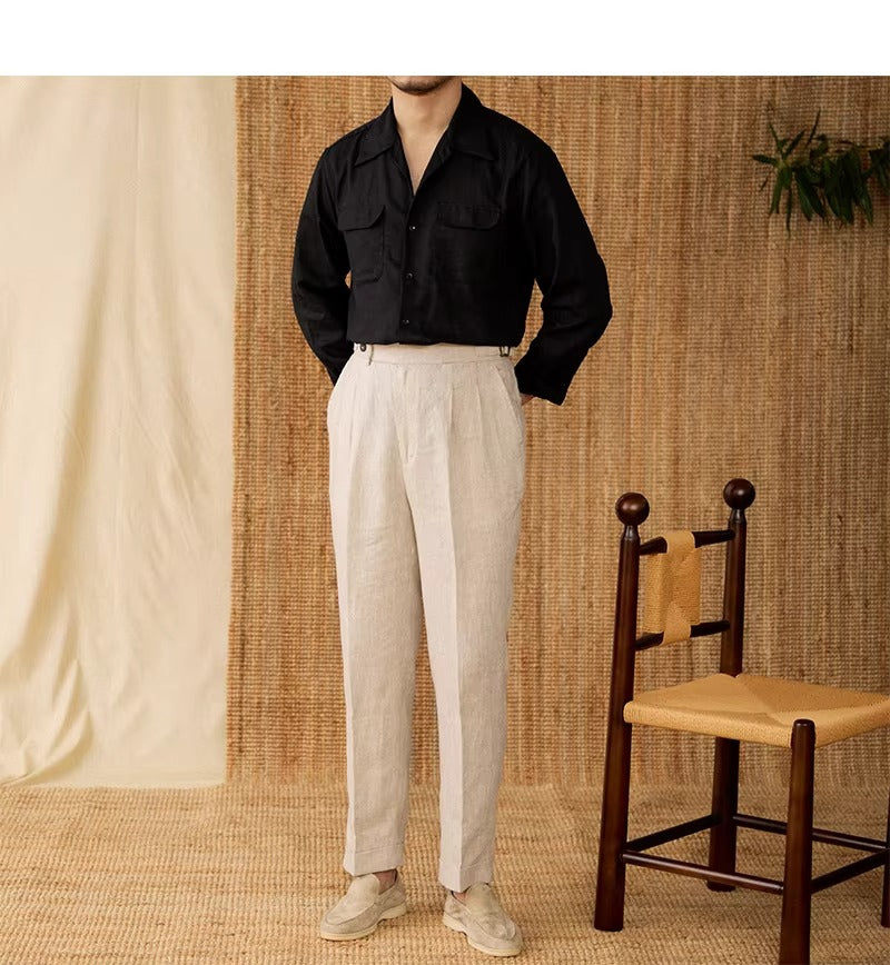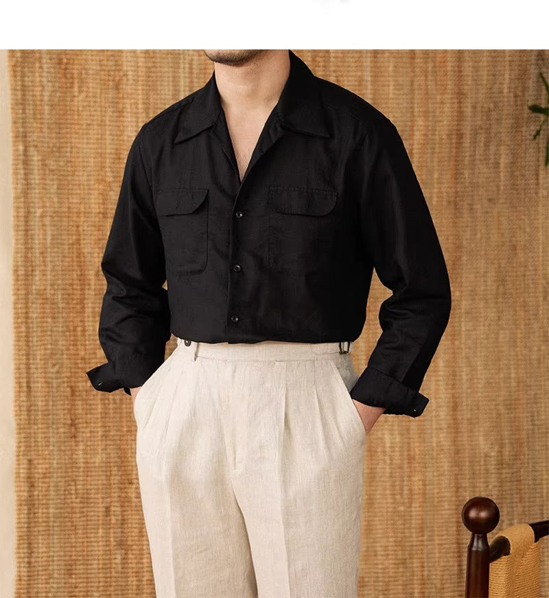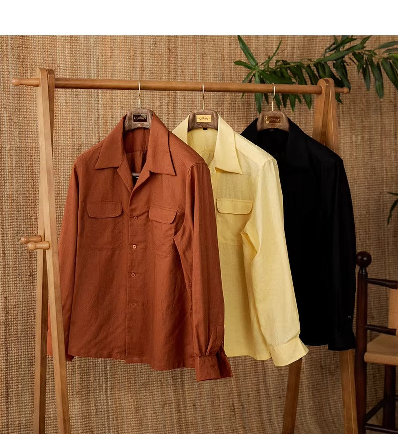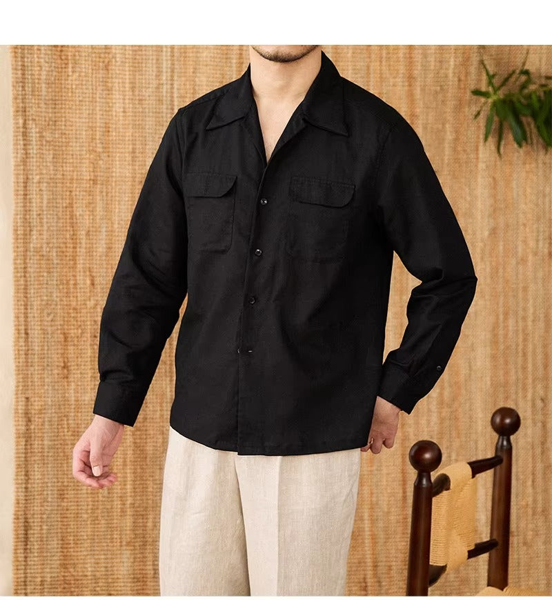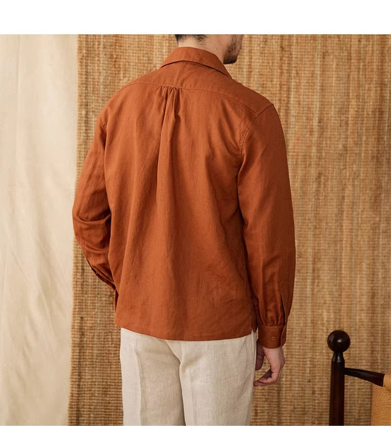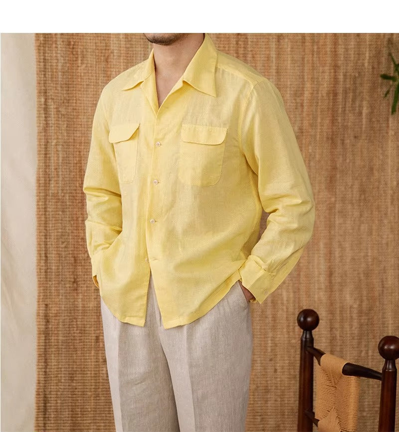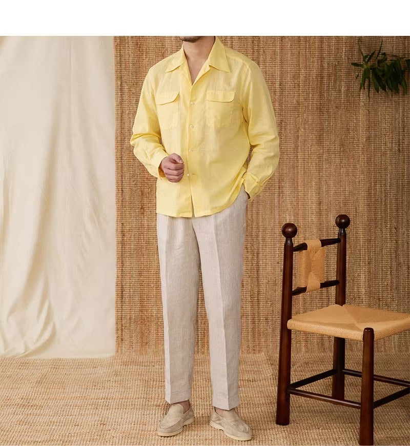 Luftiges Herrenhemd aus Leinen Mit Kubakragen und Langarm – Mateo