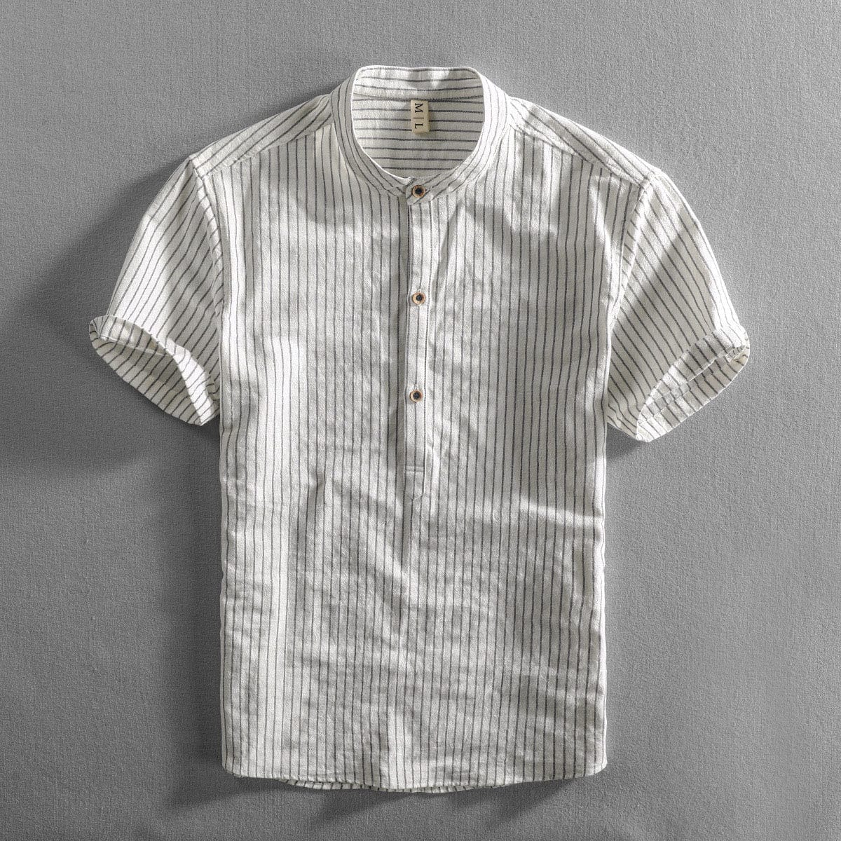 Entdecken Sie die perfekte Mischung aus Komfort und Stil mit dem Polo-Leinenhemd von Michele Harding. Das Hemd aus atmungsaktivem Baumwollstoff verfügt über einen stilvollen geknöpften Stehkragen und kurze Ärmel, die es zu einem vielseitigen Teil für jede Sommergarderobe machen. Die lockere Passform und das charmante Streifendesign, das in verschiedenen Farben erhältlich ist, sorgen dafür, dass Sie mühelos Gelassenheit ausstrahlen, wo immer Sie hingehen.