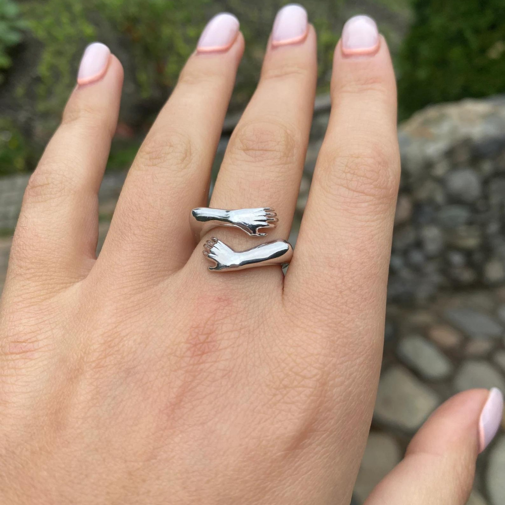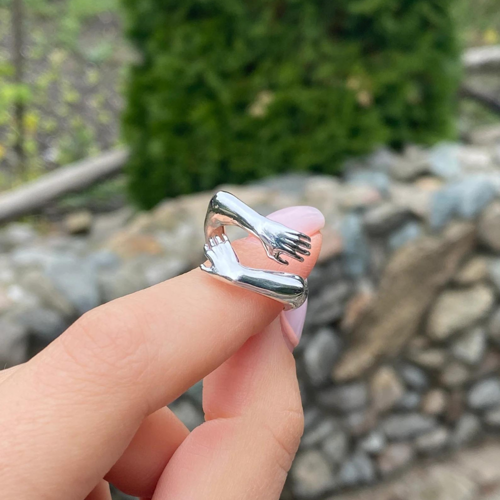 • Einzigartiges Design – Der Ring besteht aus einer Handumarmung und verfügt über eine Innenseite, die jederzeit und überall angenehm zu tragen ist.