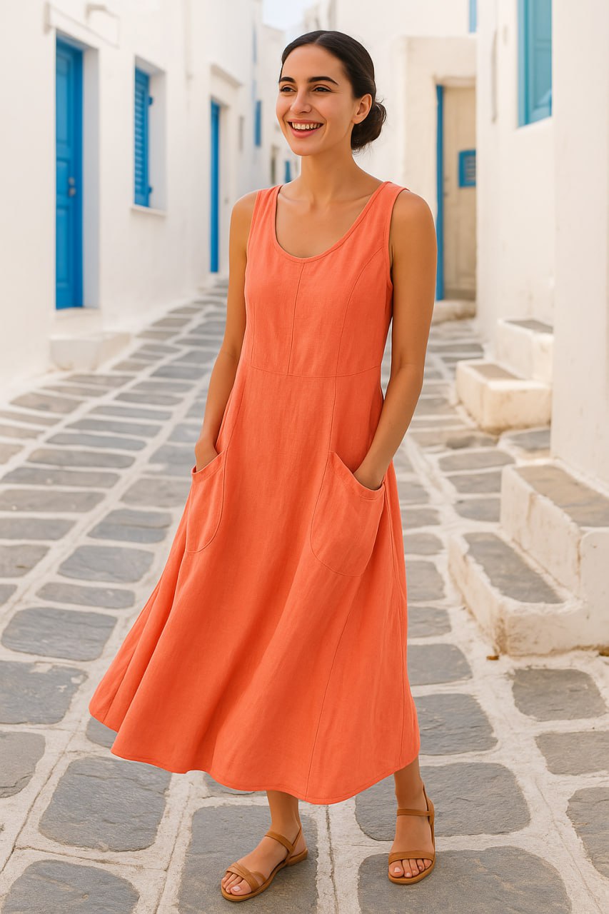 SOREYA ist gemacht für sonnige Tage, spontane Abenteuer und maximale Bewegungsfreiheit. Mit ihrem ärmellosen Design, der lockeren Passform und den zwei großen aufgesetzten Taschen vereint sie Funktionalität und feminine Lässigkeit – ideal für Alltag, Urlaub oder Wochenend-Ausflüge.