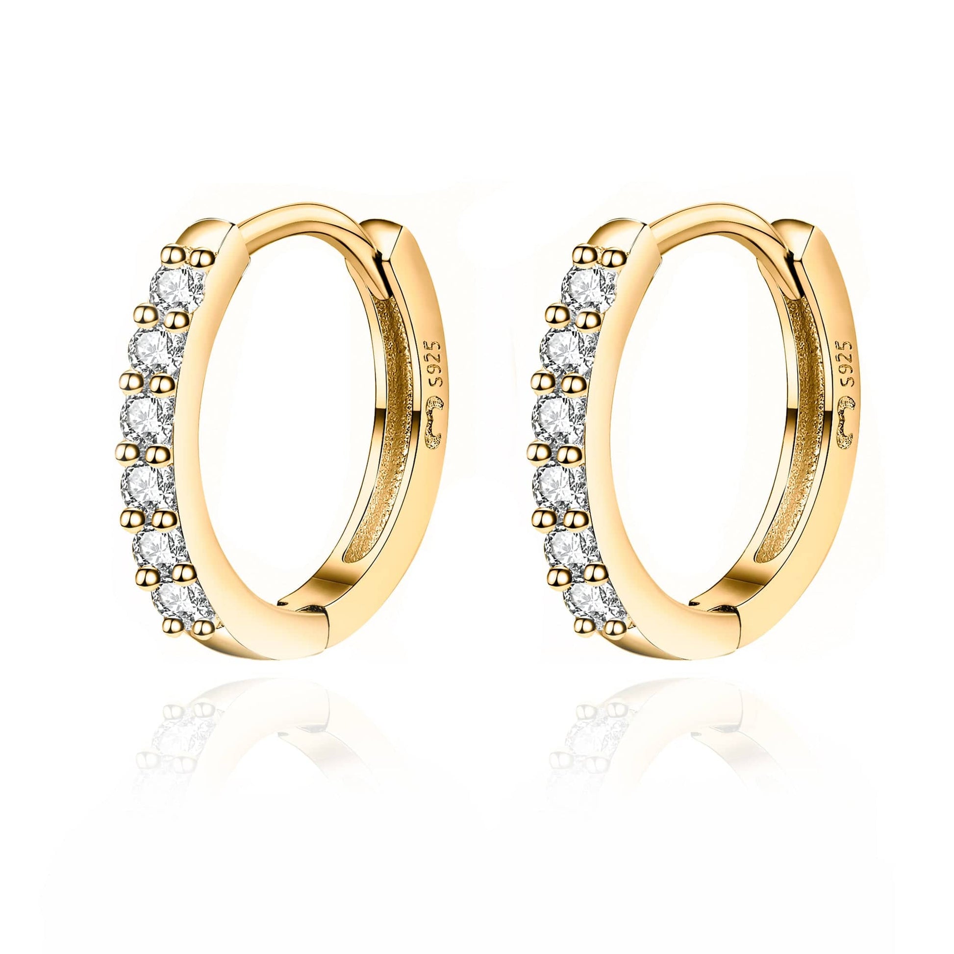 Unsere Mila Zirkonia-Ohrringe sind dezente, ringförmige Ohrringe mit einem strahlenden Design, verziert mit funkelnden Zirkonia auf der Vorderseite. Gefertigt aus Sterlingsilber (S925) und erhältlich in Silber oder mit einer 18K Vergoldung, verleihen diese Ohrringe jedem Outfit einen glänzenden Akzent. Perfekt für den Alltag und besondere Anlässe.