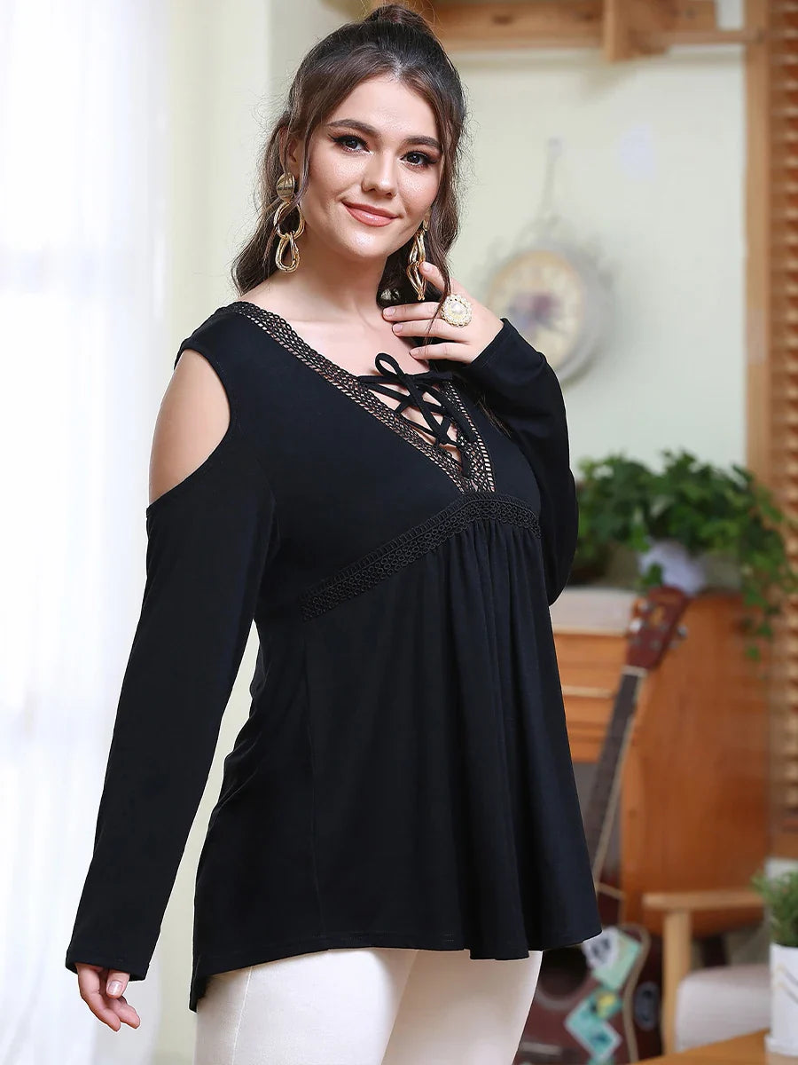 Erleben Sie die perfekte Mischung aus Lässigkeit und Chic mit diesem Cold Shoulder T-Shirt in Übergröße, maßgeschneidert für alle, die modische Details in ihrer Freizeitkleidung schätzen. Holen Sie sich jetzt Ihr Exemplar, solange der Vorrat reicht!